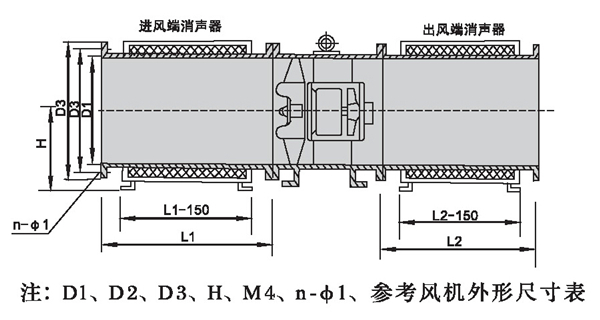 注: HTF型可根據(jù)需要制成消音型(進出風端加置專用消聲器) ;表示方法: 機號后面加字母“X”。HTF型均可制成屋頂式,表示方法:機號后面加字母“W”