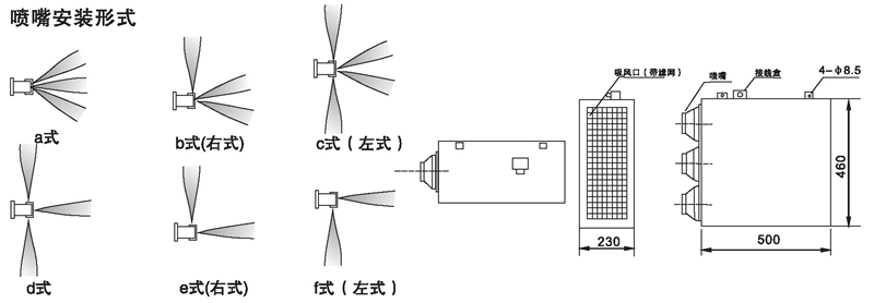 可配用萬向球形噴嘴或導管式噴嘴,外形右見圖。